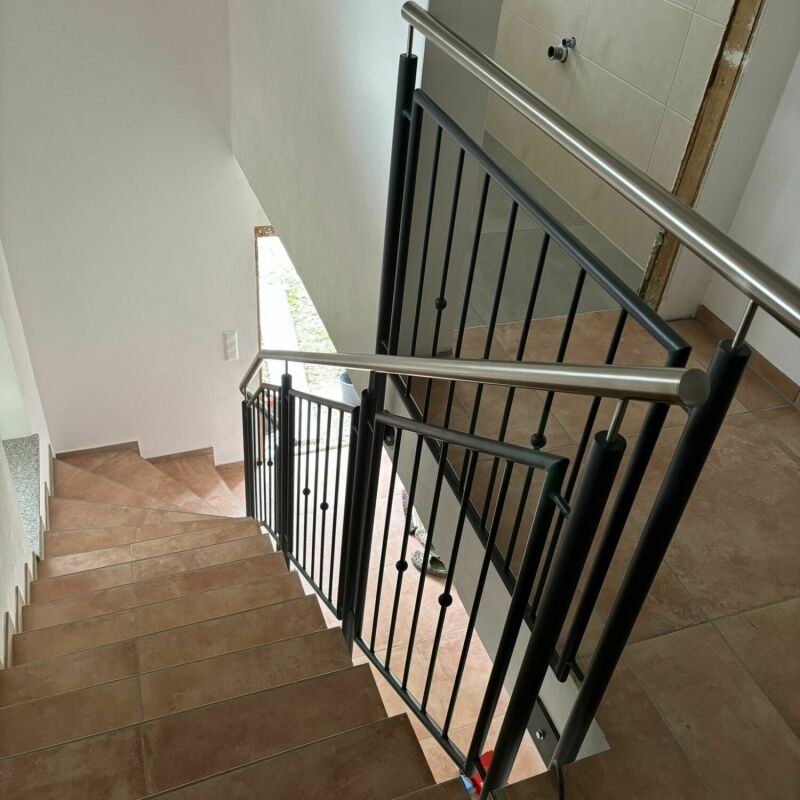 Treppengeländer pulverbeschichtet mit Edelstahlhandlauf, Prem