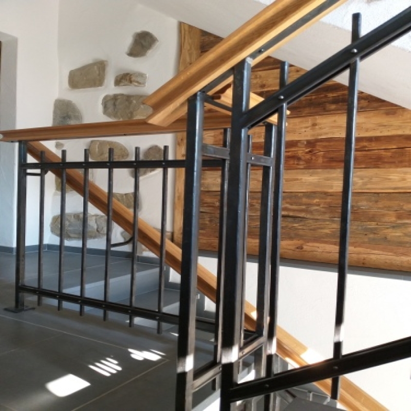 Treppengeländer in schmiedeeisen, mit Holzhandlauf, Speiden