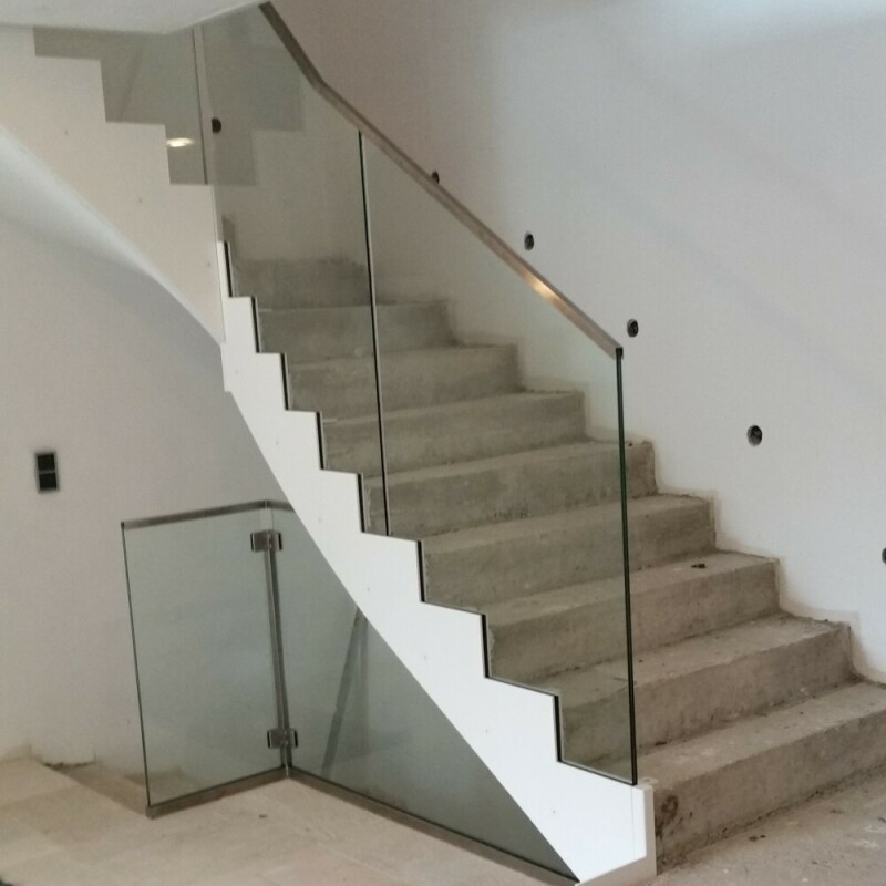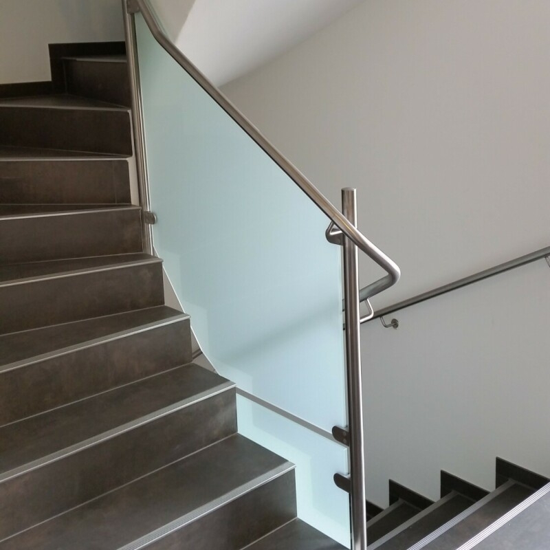 Treppengeländer aus Ganzglas, mit Edelstahlabdeckung, Ingenried
