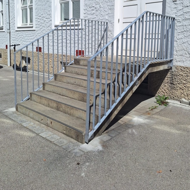 Treppengeländer aus Flachstahl, feuerverzinkt, Füssen